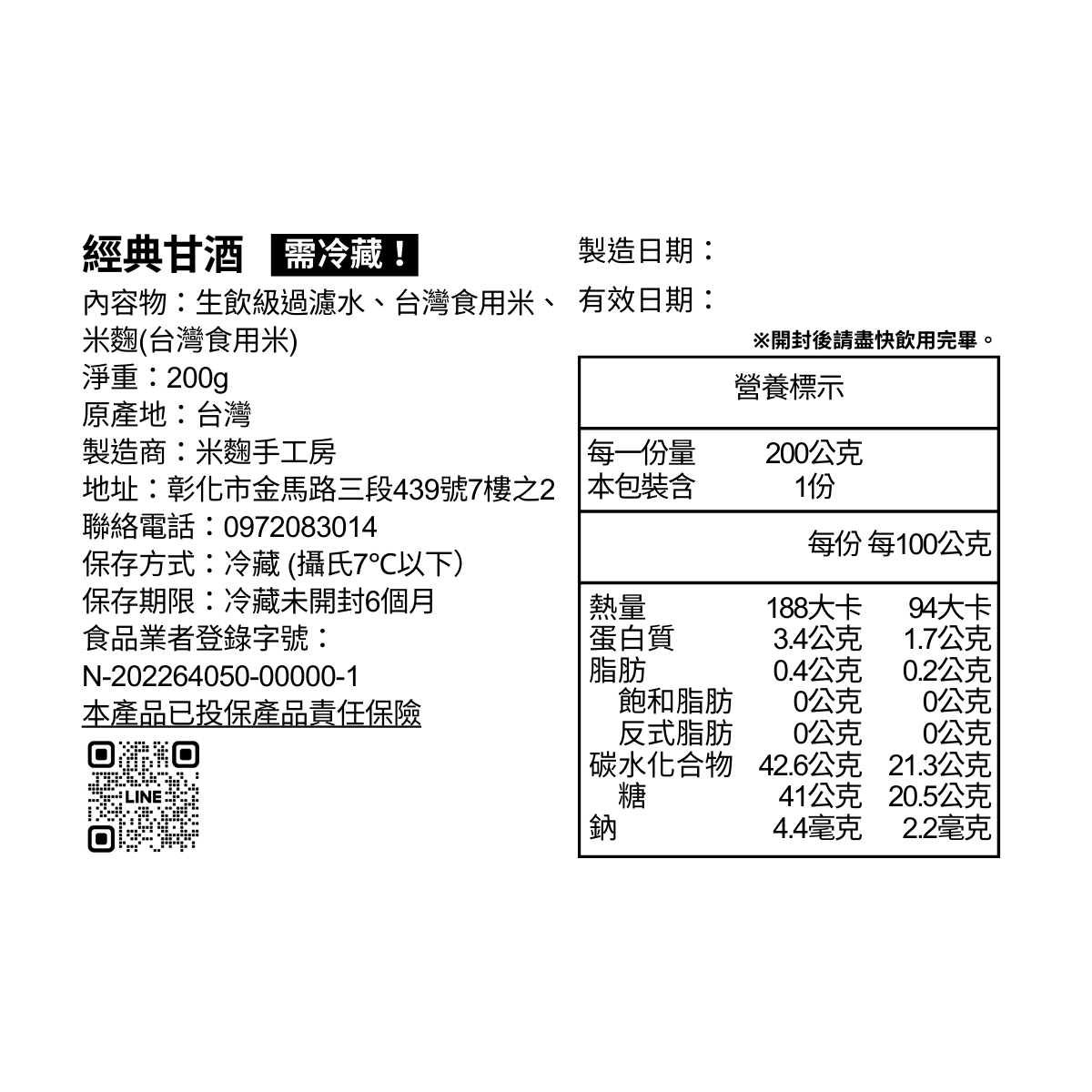- 保存期限:冷藏未開封6個月
