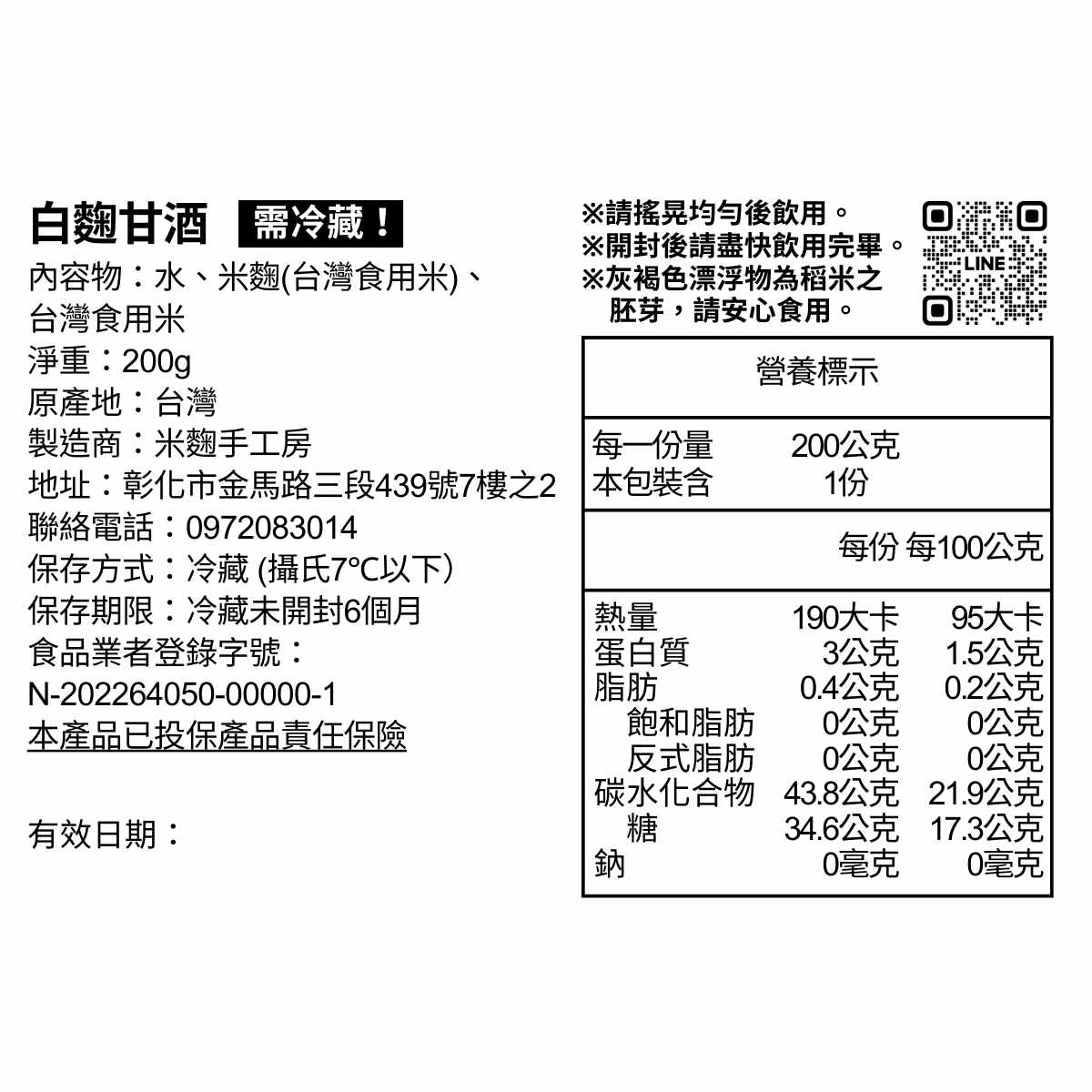 • 淨重:200克(甘酒七日生活組 白麴甘酒款為 200克 x 7包)